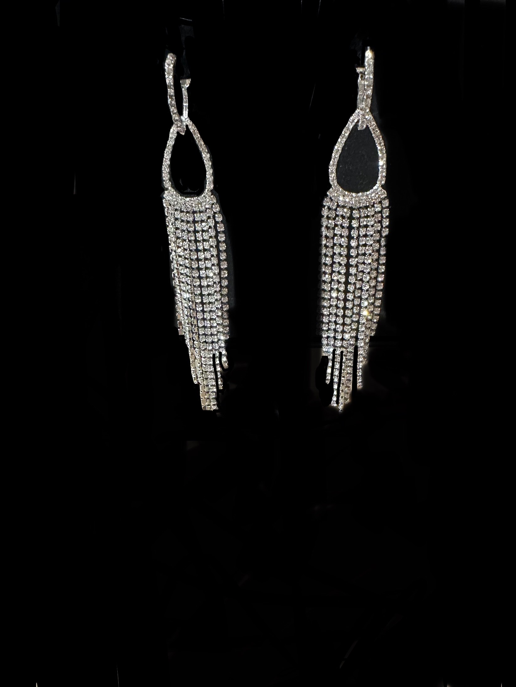 This beautiful flowing crystal set has a pair of crystal hoops and flowing crystals. Great for the stage or a dressy night out!